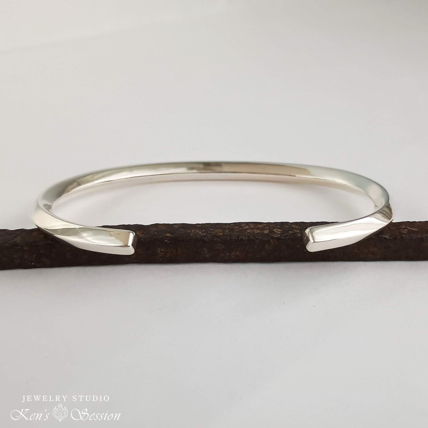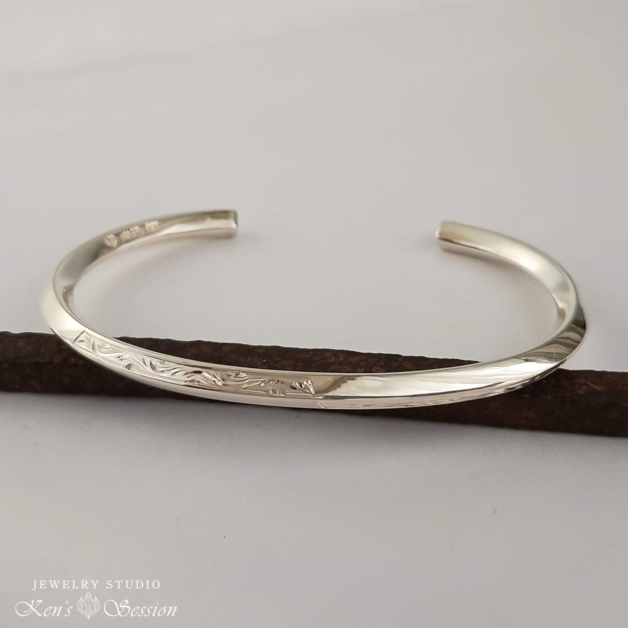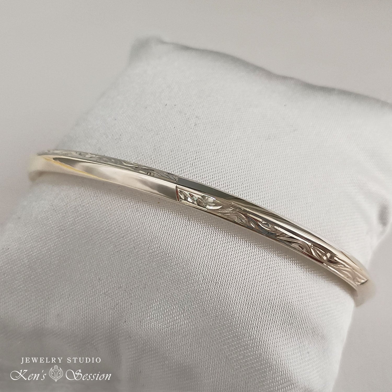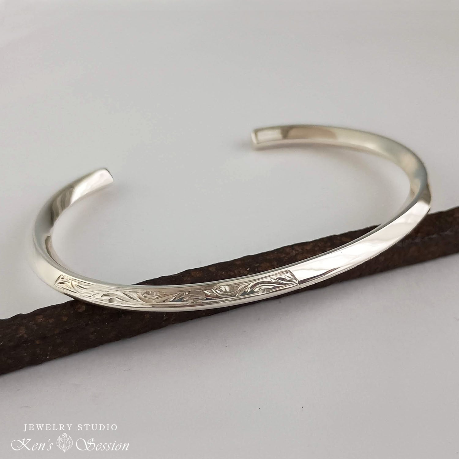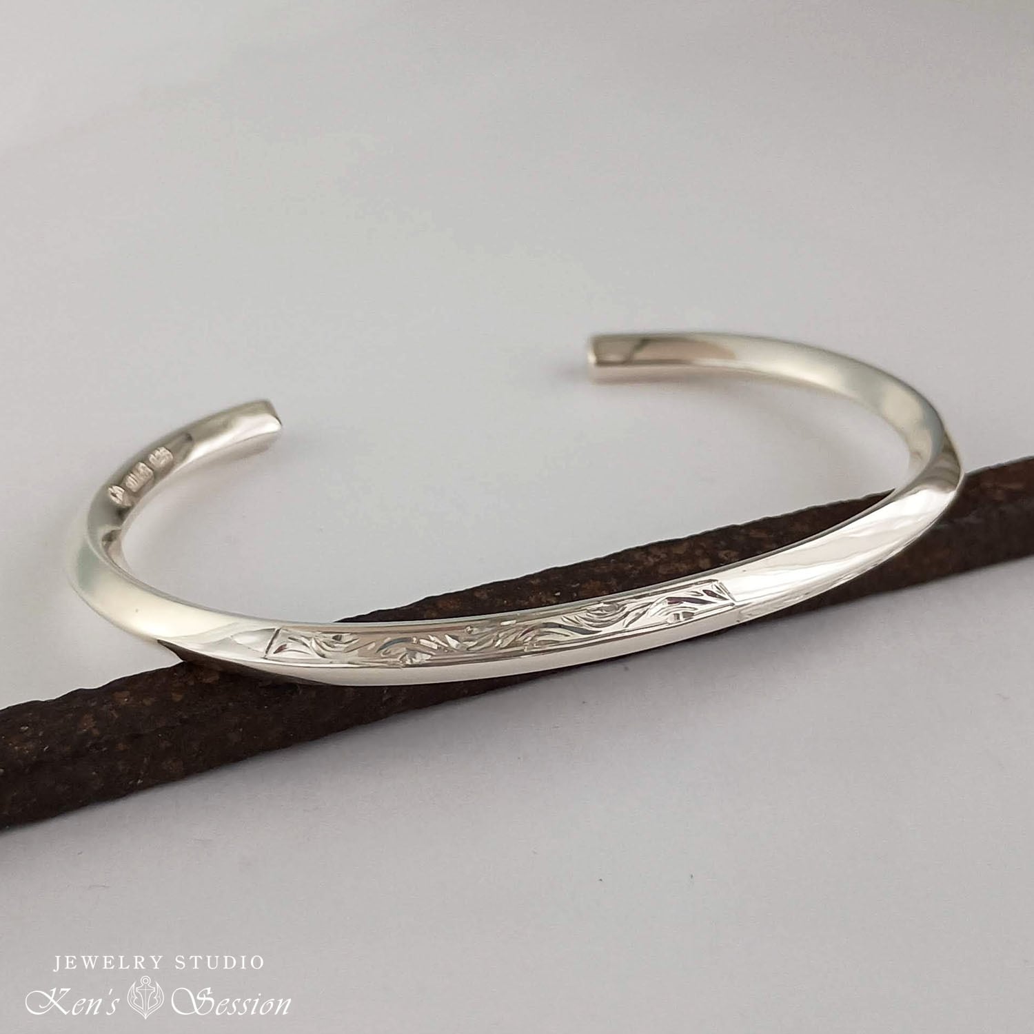 手彫り唐草ダイヤ型シルバーバングル(SV925)(kh-ban-001)
