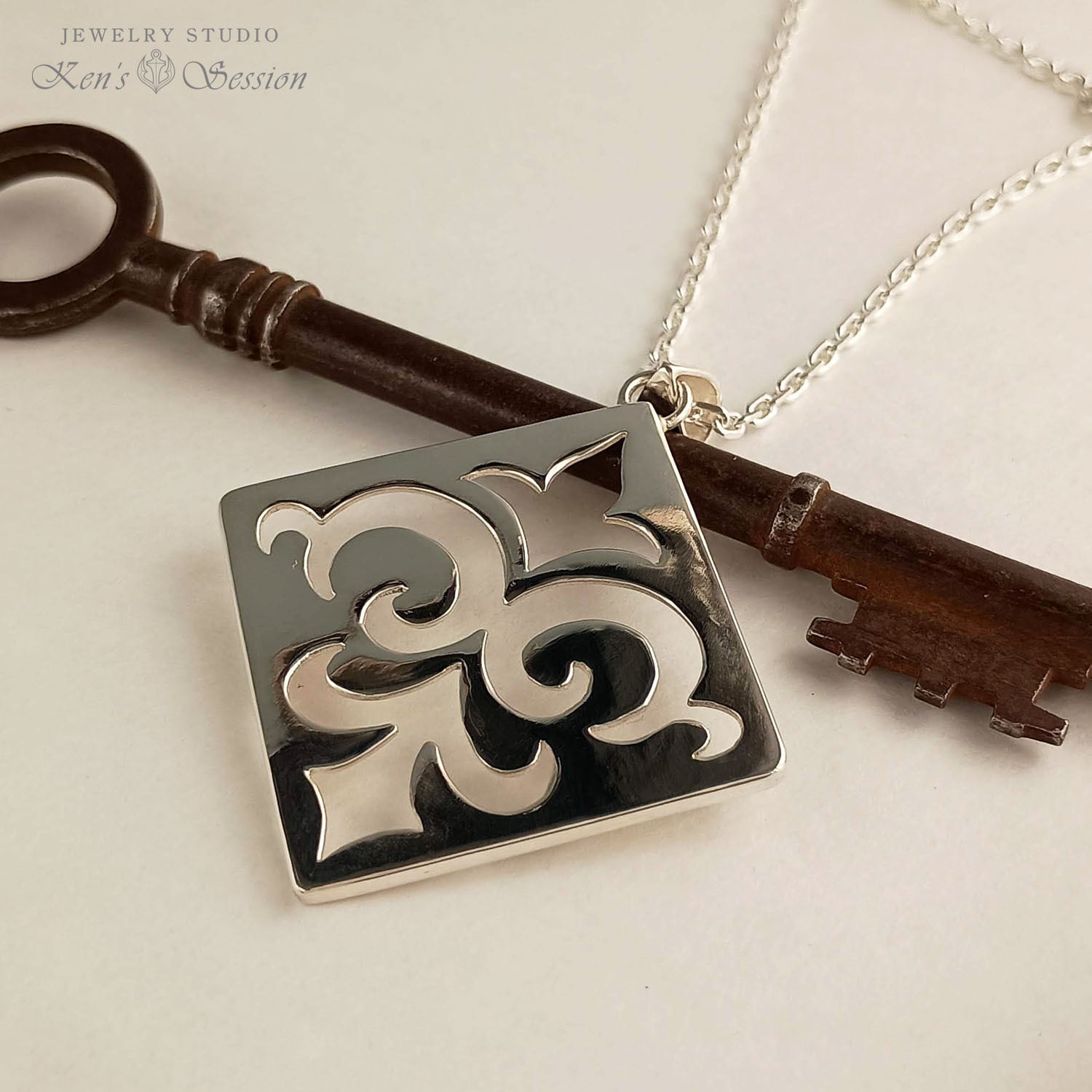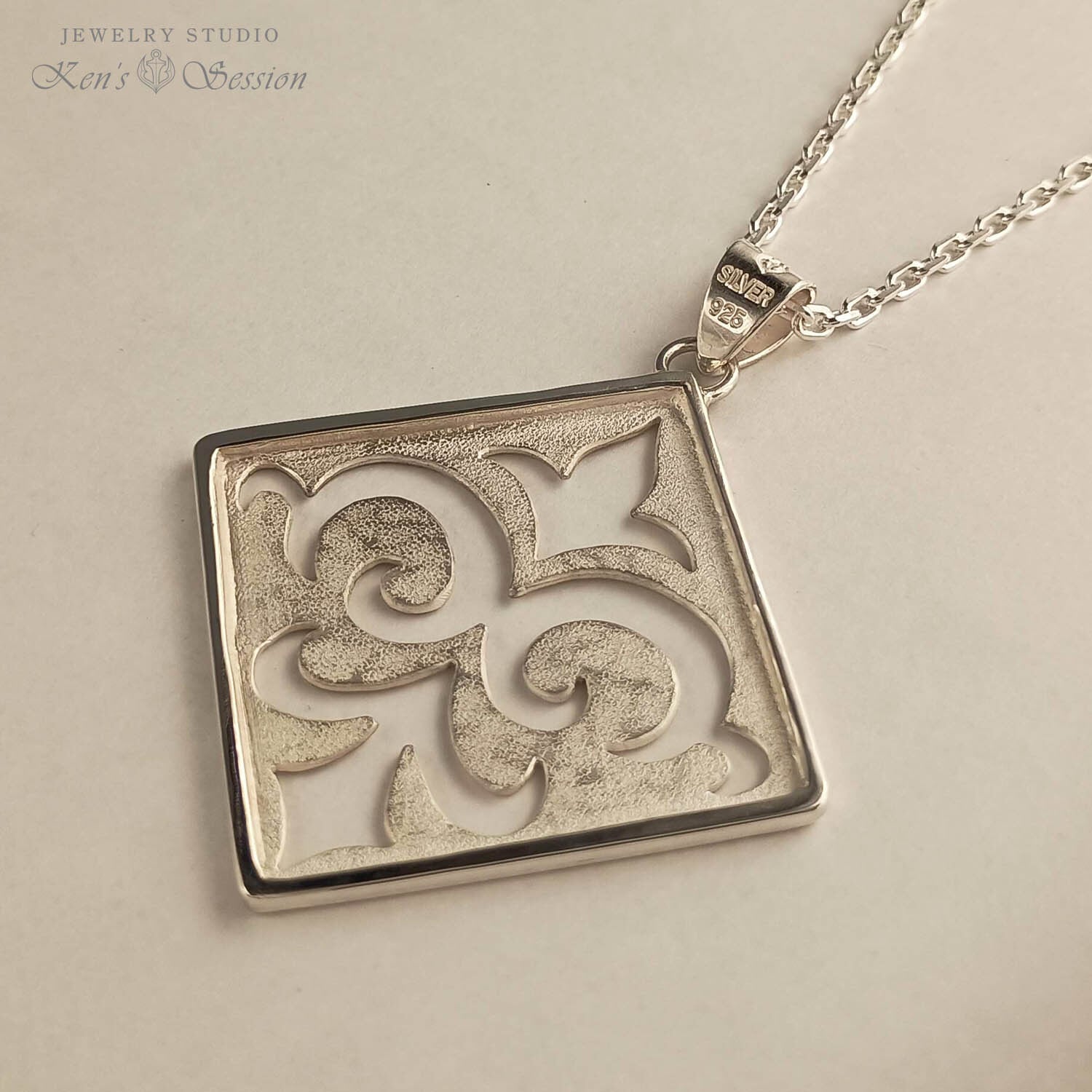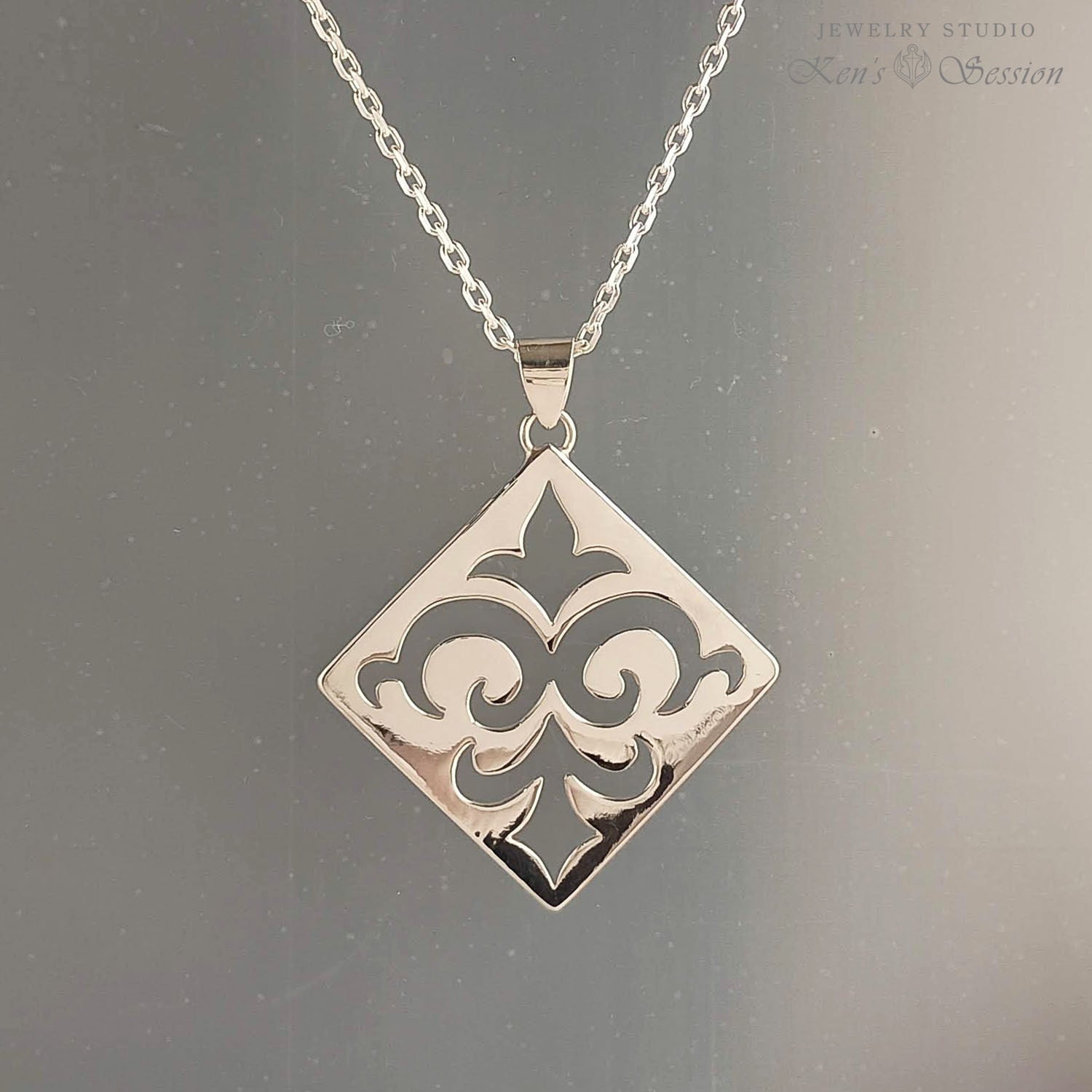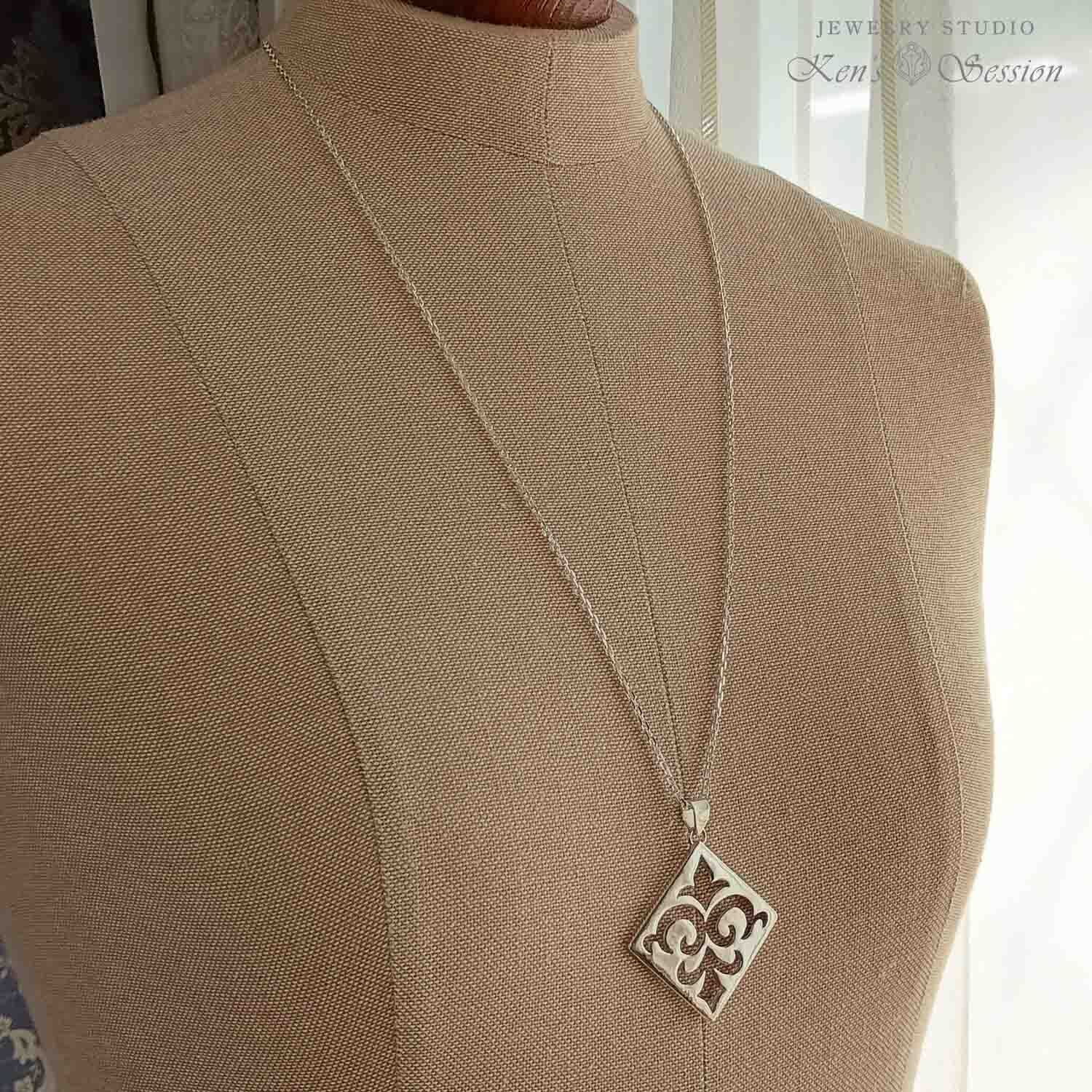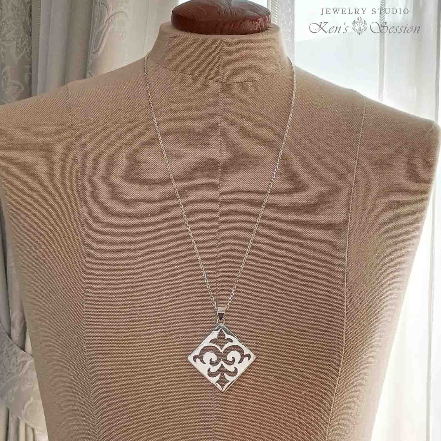リリー透かしスクエアダイヤ型プレートネックレス(SV925)(fs-n-001)