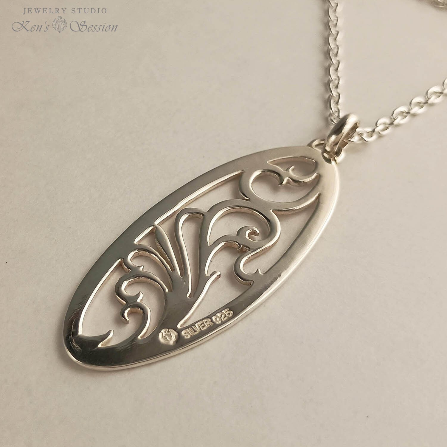 アラベスク透かしオーバルプレートネックレス(SV925)(fs-n-005)