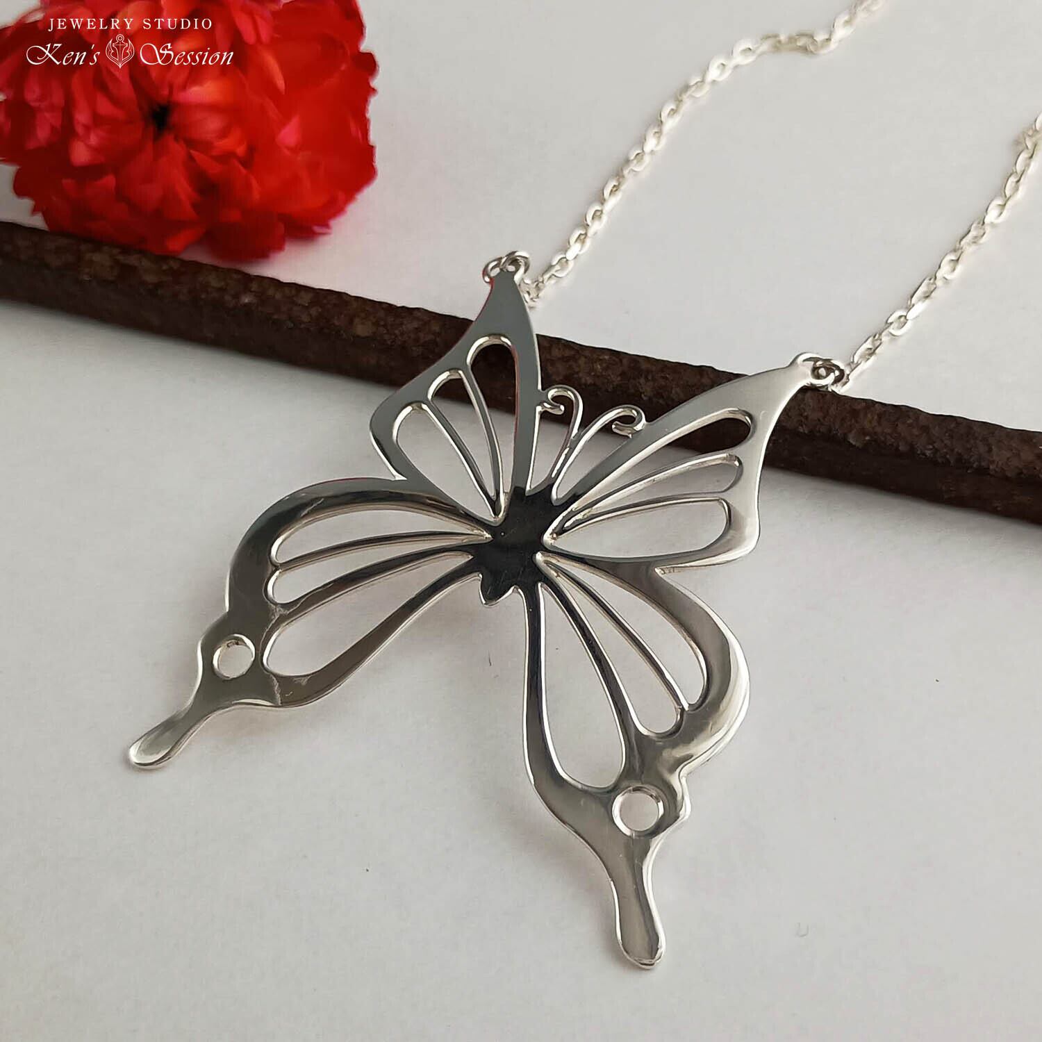 バタフライ透かし両吊りネックレス(SV925)(fs-n-026)