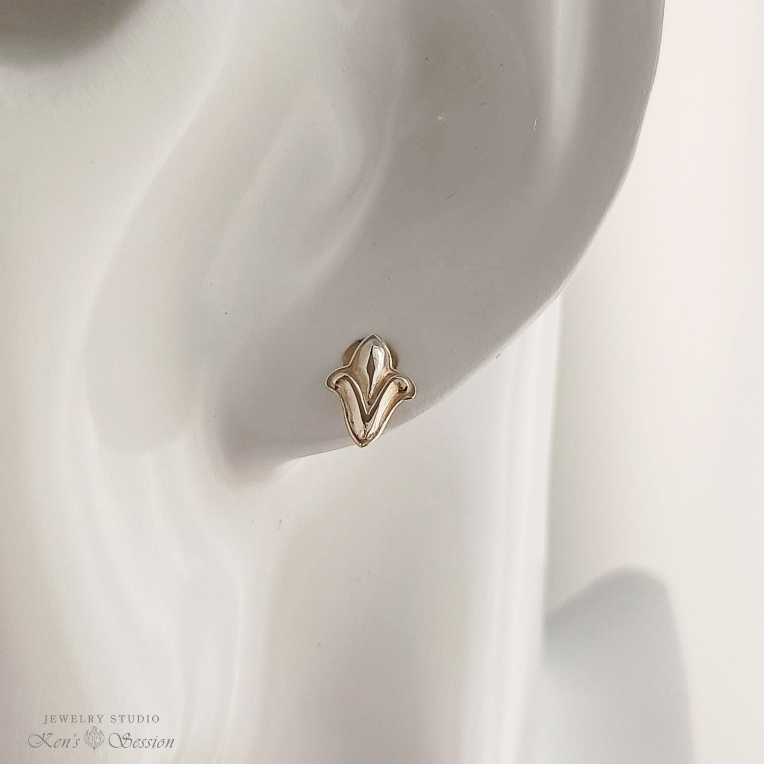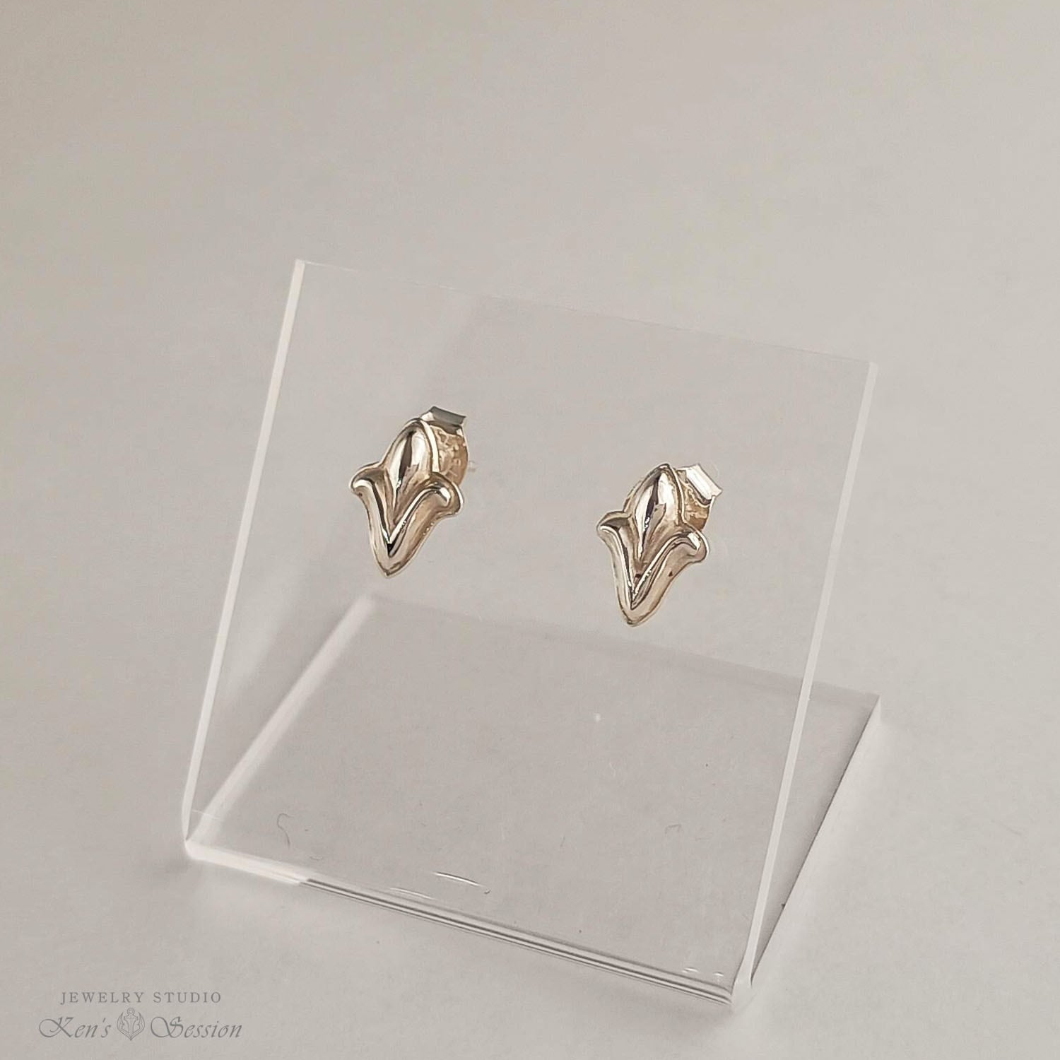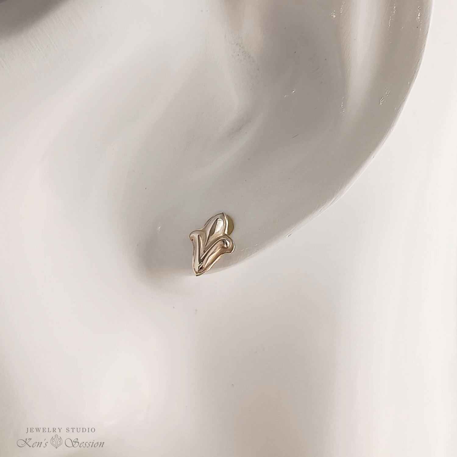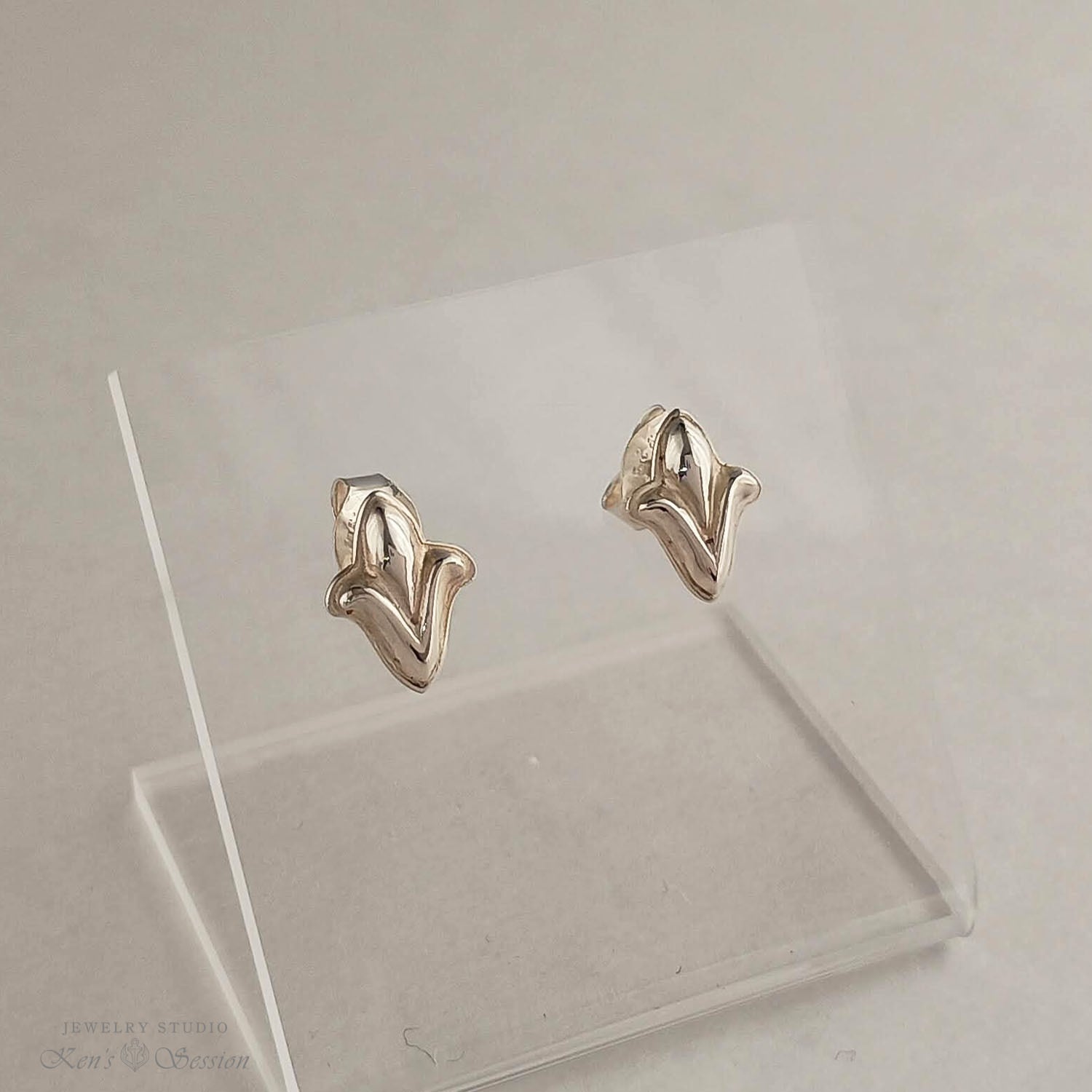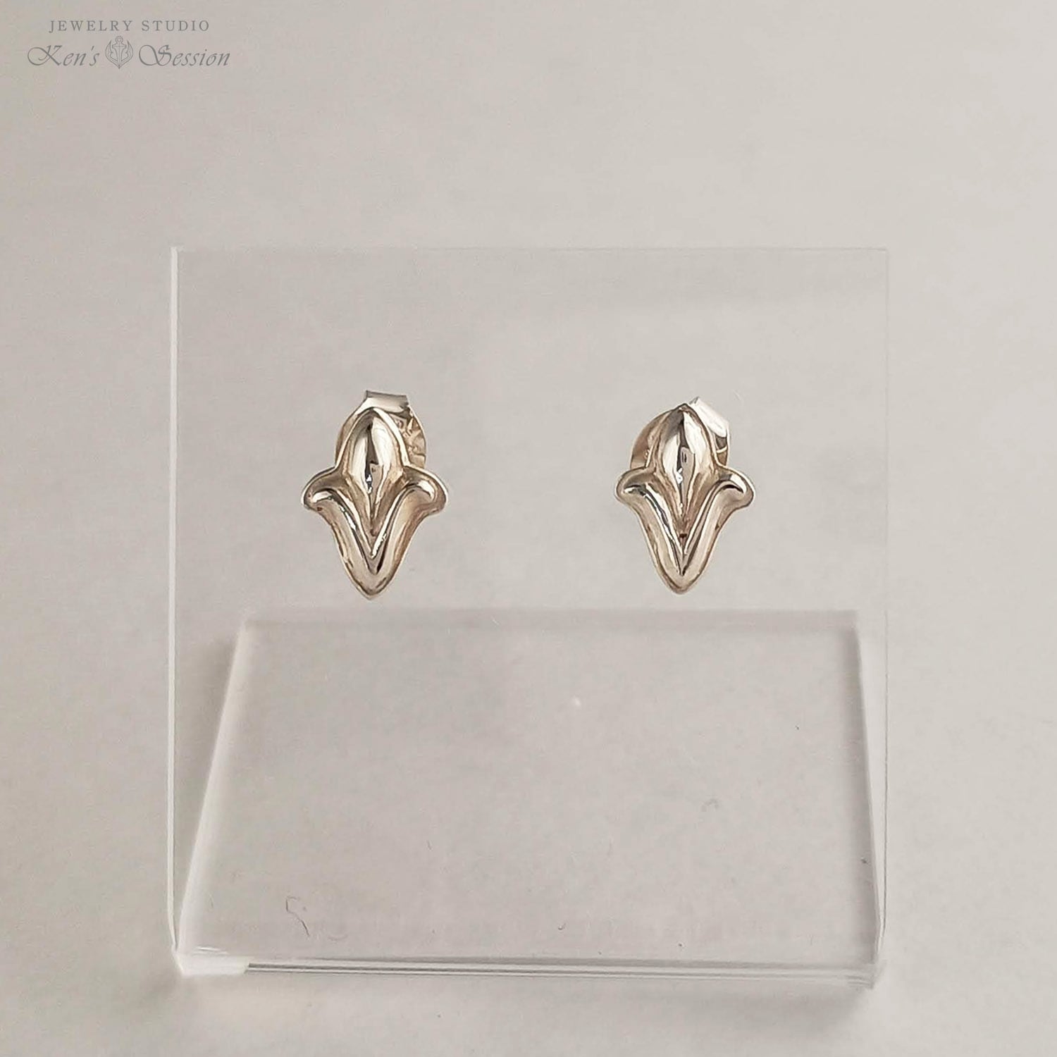 百合の花の蕾をモチーフに、立体的に造形したシルバーピアスになります。 細身のシルエットは着けた耳に、シャープな印象を与えます。 シンプルなデザインは、飽きずらくヘアカラーやスタイルも選ばずに身に着けられ、シルバー特有の硫化による味が出てくると更に立体感が増して、長く楽しめるピアスになります。